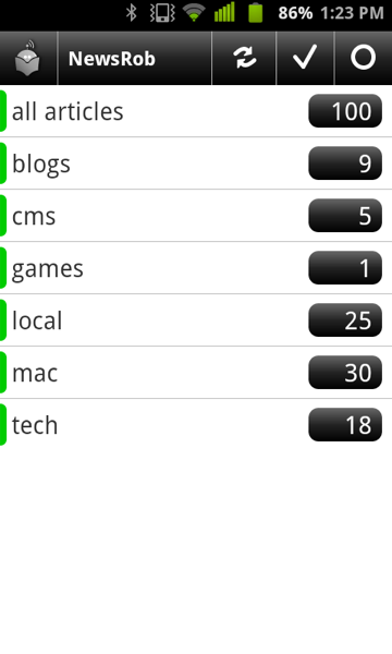 When it comes to buying apps, trust the hive mind. I should have learned that bit of wisdom long ago, but at times I need to learn from my own mistakes. My selection of a blogging editor was one mistake, where I could have just listened to the wisdom that I saw espoused all over the Internet. My selection of a Google Reader app for my Android phone was another. Shortly after getting my phone, I tried out the official Google Reader app, then dropped money on another app that I’ve long since forgotten. Finally, I surrendered and tried out NewsRob, the app that received everyone’s praises. I’ve been using it ever since.