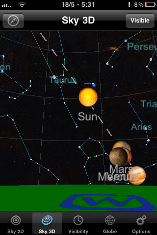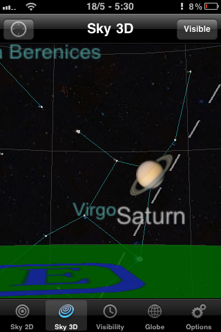 Planets doesn’t compare to the feature-sets of some of the paid apps like Starwalk for iPad, but it isn’t bogged down by complications either. It’s a straightforward 2D or 3D view of the heavens, augmented by some location-based gyroscope action. This is especially useful in the 3D view, as it allows you to get a look at the constellations and planets as you turn and point your iPhone or iPad. The 2D view provides a some useful information at a touch, such as rising and setting times of planets, the sun, and the like, but it’s the 3D virtual planetarium that gets me.