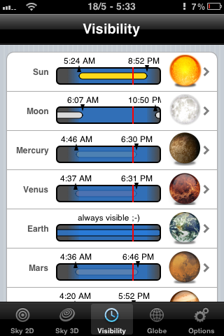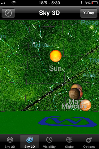 Belatedly, it hit me: I own a GPS-capable, compass-packing smartphone. Somebody must have created a stargazing app for the iPhone and/or iPad. There’s an app for everything, or some other such marketing phrase, right? Of course, it turned out that there were several apps of varying costs and degrees of complexity — and the one that struck the balance with me was simple, free app (with over 5 million downloads) called Planets.